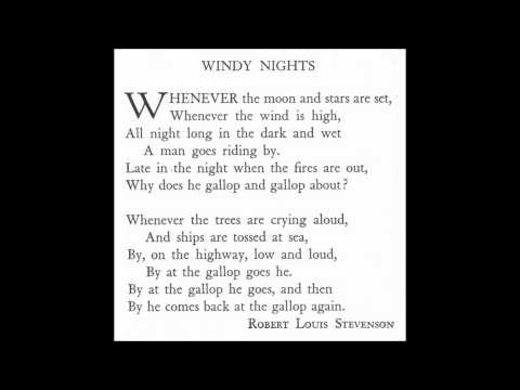 Windy Nights }}- This was a song that we sung in our school choir. I instantly fell in love with it the moment I heard it. This song was based off a poem by Robert Louis Stevenson ...